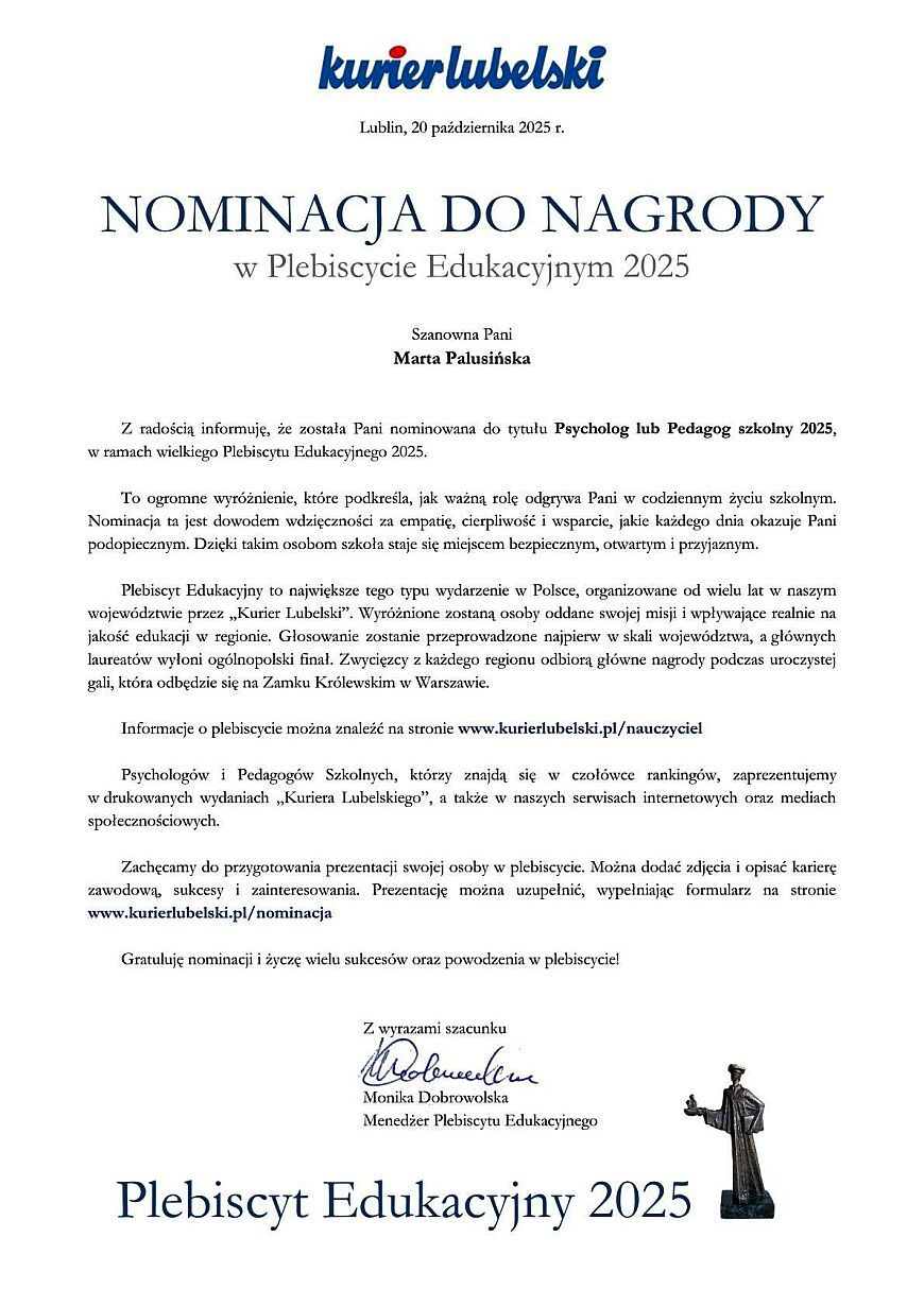 NOMINACJE DO NAGRODY w Plebiscycie Edukacyjnym 2025 |