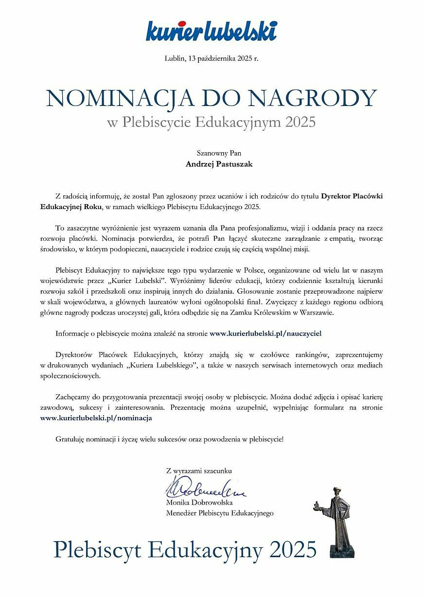 NOMINACJE DO NAGRODY w Plebiscycie Edukacyjnym 2025 |