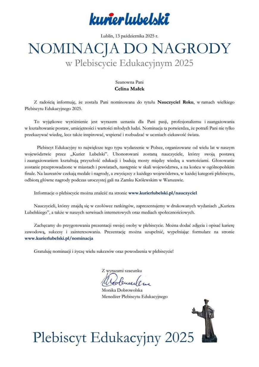 NOMINACJE DO NAGRODY w Plebiscycie Edukacyjnym 2025Archiwum