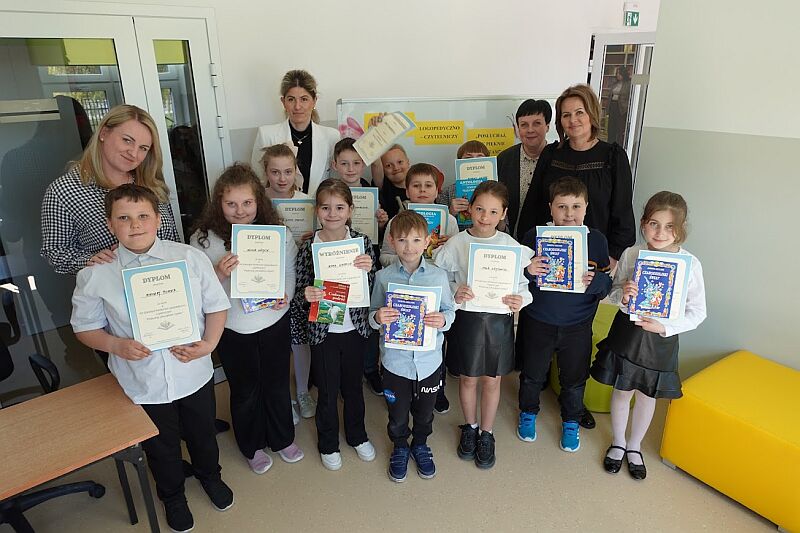 Już po raz czternasty w bibliotece szkolnej zgromadzili się pięknie czytający przedstawiciele klas II i III, by wziąć udział w szkolnym konkursie czytelniczym z elementami logopedii. Wydarzenia to miało miejsce 22.04.2026r., a jego głównym celem było rozwijanie zainteresowań czytelniczych, prawidłowej wymowy, doskonalenie dykcji, wzmacnianie pewności siebie w wystąpieniach publicznych, a także integracja międzyklasowa. Wszystkie dzieci bardzo ładnie zaprezentowały swoje czytelnicze i artykulacyjne umiejętności, wykazały się znajomością literatury dziecięcej i lektur szkolnych, za co otrzymali pamiątkowe nagrody i dyplomy.